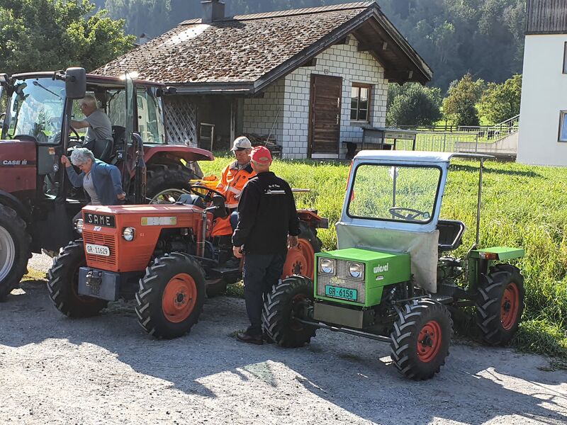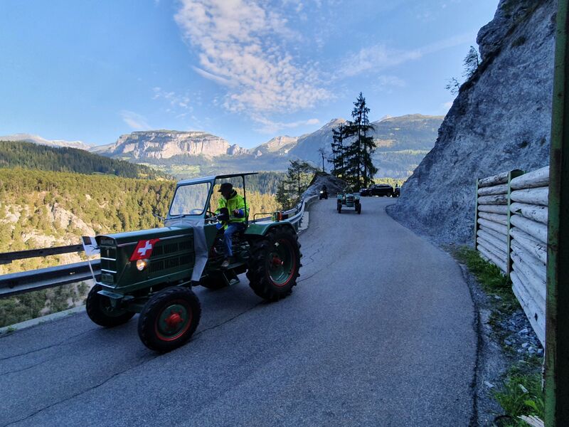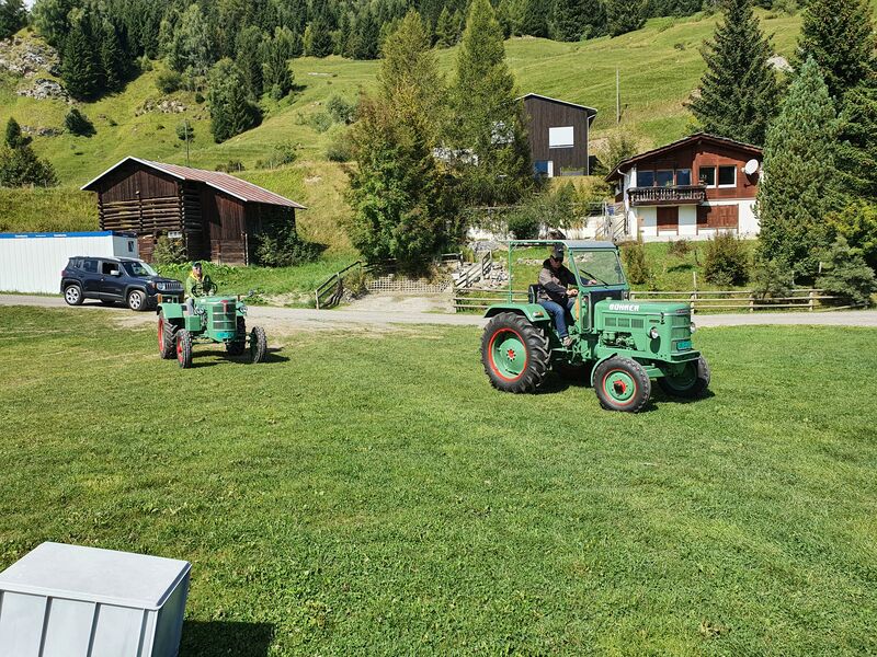 Früh am Morgen an einem Samstag anfangs September trafen sich die Almatraker um gemeinsam ins Val Lumnezia im Bündner Oberland zu fahren. Je weiter sie fuhren, desto mehr Mitglieder schlossen sich dem Tross an, bis dann insgesamt 18 Oldies dahin knatterten. Nachdem sie die wilde Ruinaulta hinter sich gelassen hatten und das Tal wieder breiter wurde, genossen sie in Castrisch einen Kaffeehalt. Nachdem sie Ilanz links liegen gelassen hatten, bemühten sich die alten Kämpfer das Val Lumnezia hinauf. An einem malerischen Badesee mit Campingplatz durften sich alle von der langen Fahrt erholen.