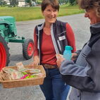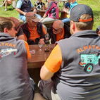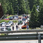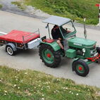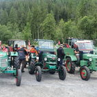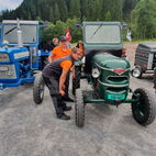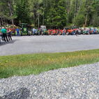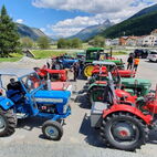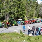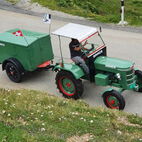 Zum Glück herrschten am Samstag traumhafte Wetterverhältnisse, so konnten die Almatraker die Bergwelt auf der Umbrailpasshöhe geniessen mit Wandern, einem Mittagsschläfchen und Fachsimpeleien während der Wartezeit. Sobald Die Straße wieder offen war, zogen sie die letzten Kilometer auf das Stilfserjoch hoch. Jedoch hatten sie Pech, die meisten Traktoren waren bereits angekommen. So genossen sie das Ambiente, das Knattern und Dröhnen der verschiedenen Maschinen und bestaunten die alten Traktoren. Natürlich durfte das Wurstbrötchen mit Krauti nicht fehlen. Zum Glück waren sie am Vorabend per Bustaxi nach Prad zum Rallyfest gefahren, so konnten sie einige der Traktoren dort bestaunen.