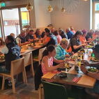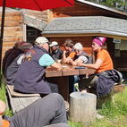 Weiter ging’s Richtung Prad runter, bevors zum Znacht ging hielten sie an einem Fischerteich, um die trockenen Kehlen zu befeuchten. In Glurns, dort wo sie bereits vor einem Jahr zu Nacht gegessen hatten, kehrten sie auch diesmal ein. Wieder hiess die Devise wieder «Friss dich zu Tode». Sie wurden verwöhnt mit feinen Salaten und allem möglichen was man auf den Grill legen kann.