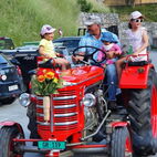 Eine Person vermisst! Bei einer Weggabelung in Prad lenkte eine Beifahrerin die Oldies in die richtige Richtung. Nur der Fahrer des letzten Traktor’s merkte nicht, dass das Winken ein Zeichen zum Anhalten und Aufsteigen war. Freundlich wie er war, winkte er zurück und fuhr weiter. Aber keine Angst kein Mitglied wurde zurückgelassen. Als die restlichen Fahrer die Abwesenheit der Verkehrsregelnden Person bemerkten, fuhr ein Auto zurück, um sie zur Herde zurückzubringen.
